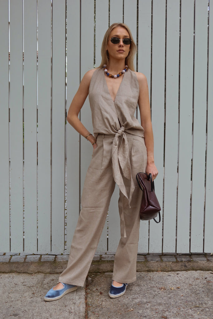 BLUSA LINO BEIGE AMARRA