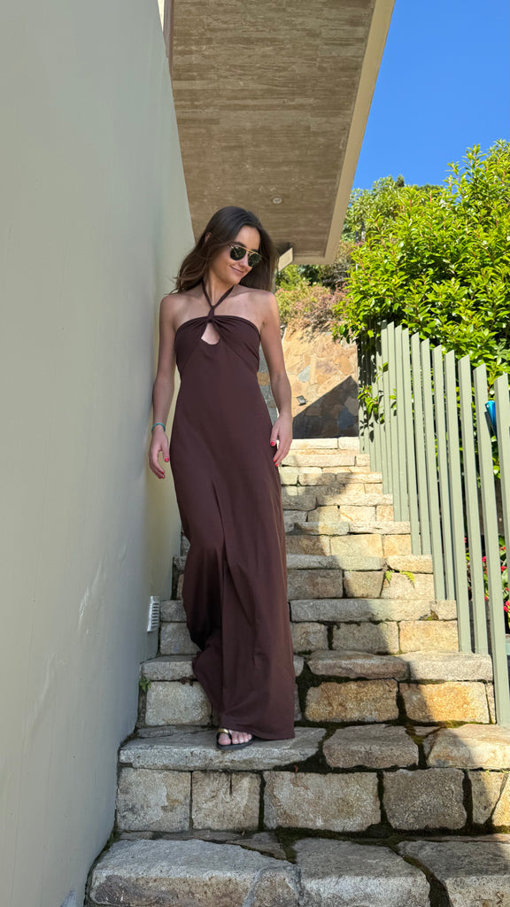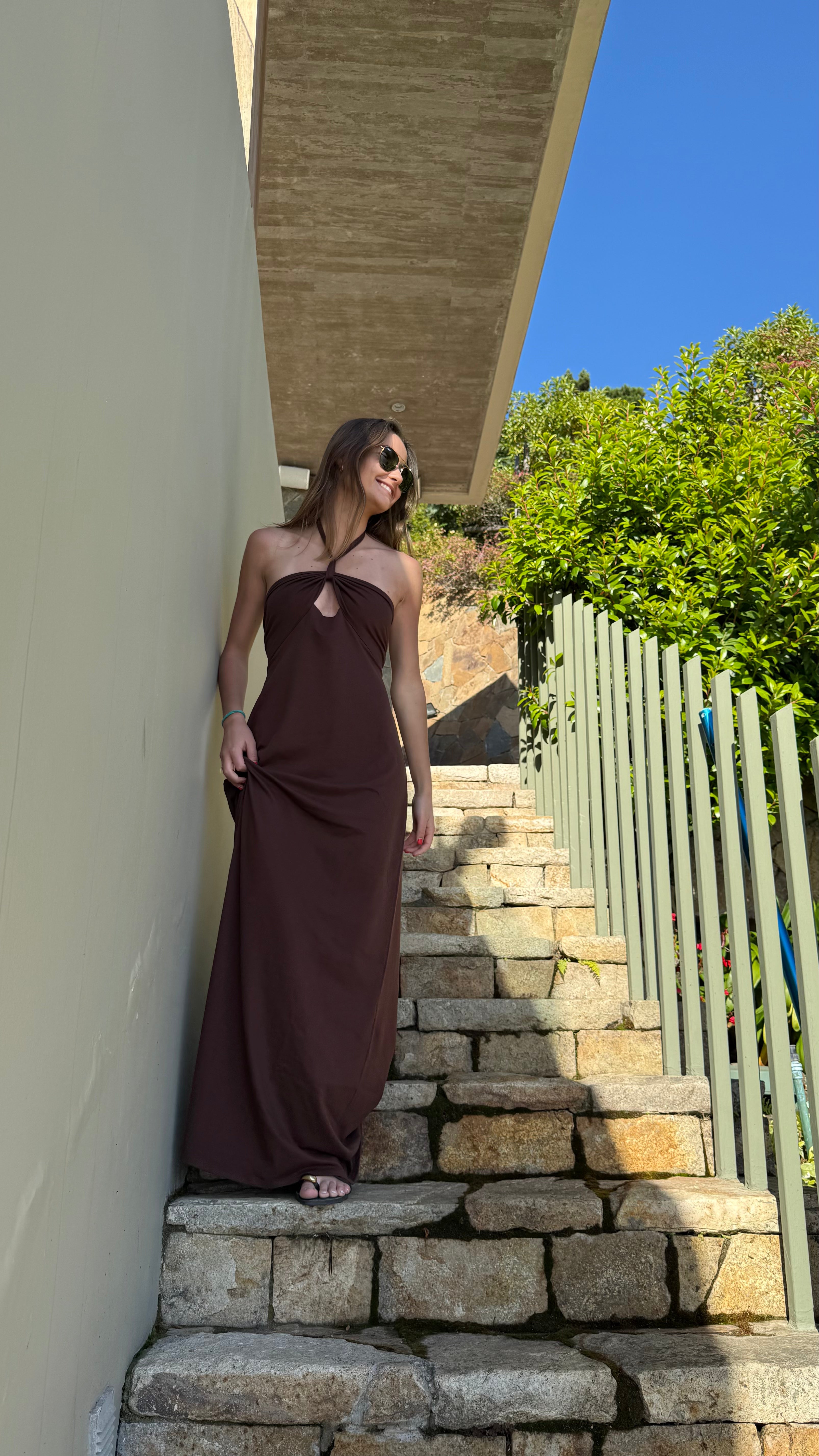Vestido largo y veraniego, de tela de algodón. Vestido en única talla S. Tiene amarra en la espalda lo que hace que se acomode muy bien a tu talla.