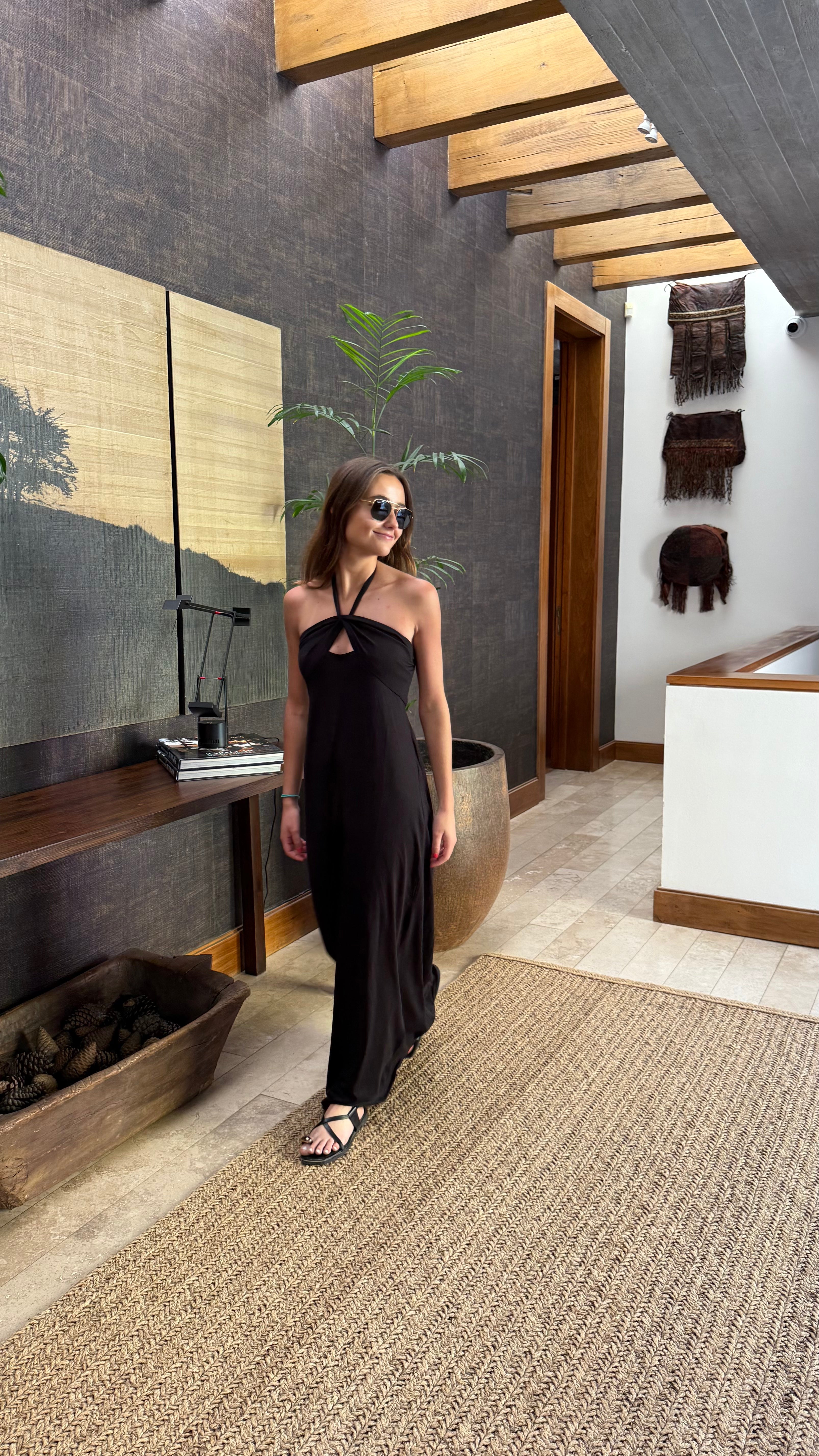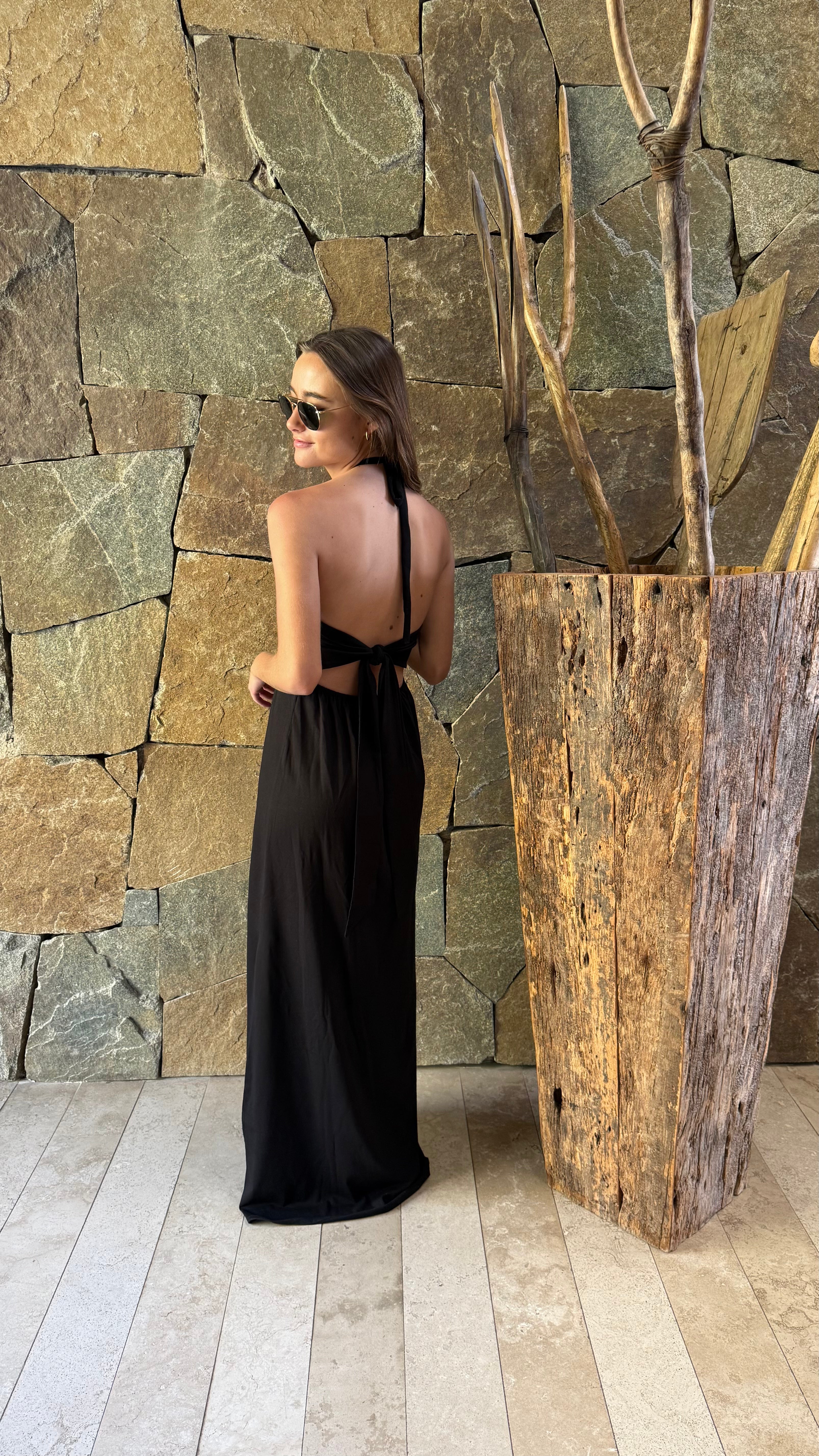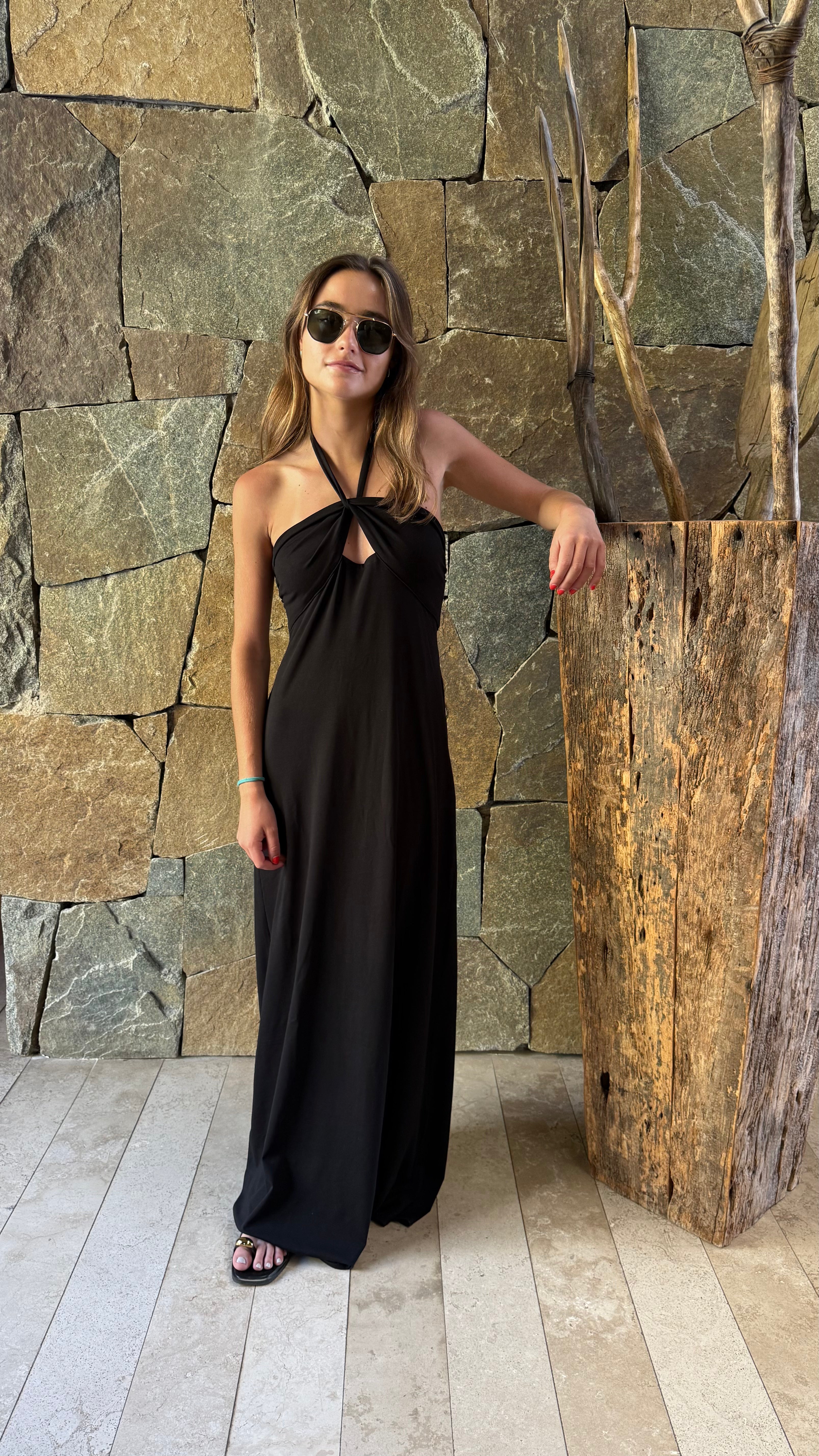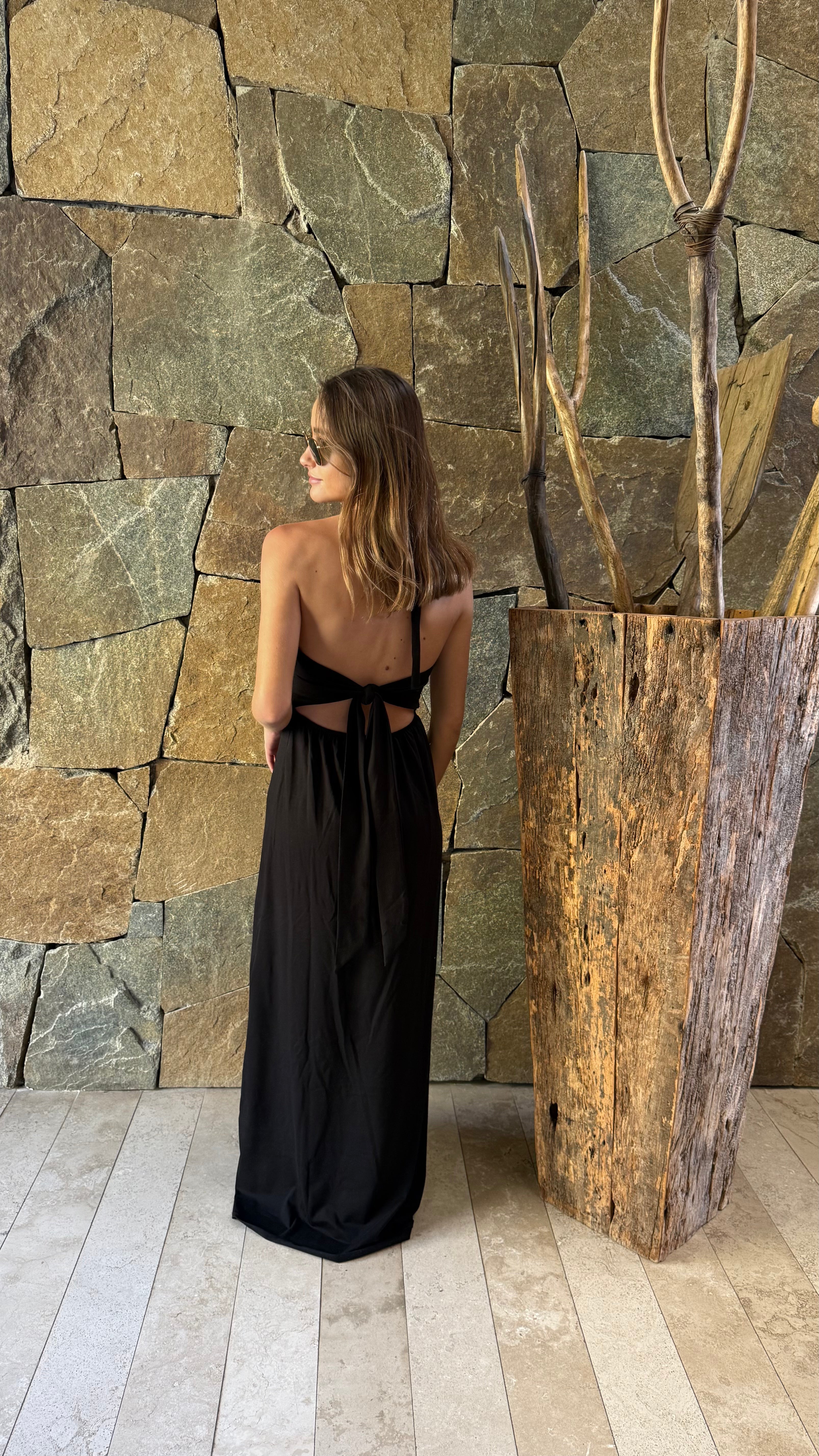 Vestido largo y veraniego, de tela de algodón. Vestido en única talla S. Tiene amarra en la espalda lo que hace que se acomode muy bien a tu talla.